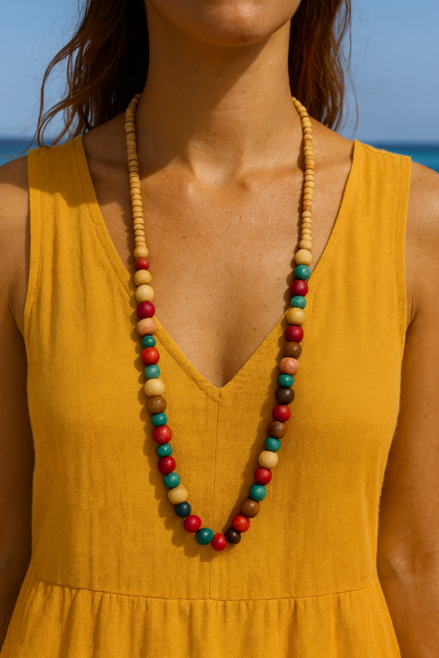 Este collar tiene colores vibrantes, ideal para el verano. Estilo boho.
