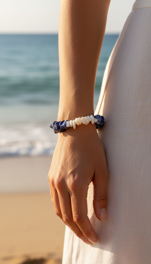 Pulsera combinada, escallas combinadas nacar y escallas lapislazuli Ver más detalles