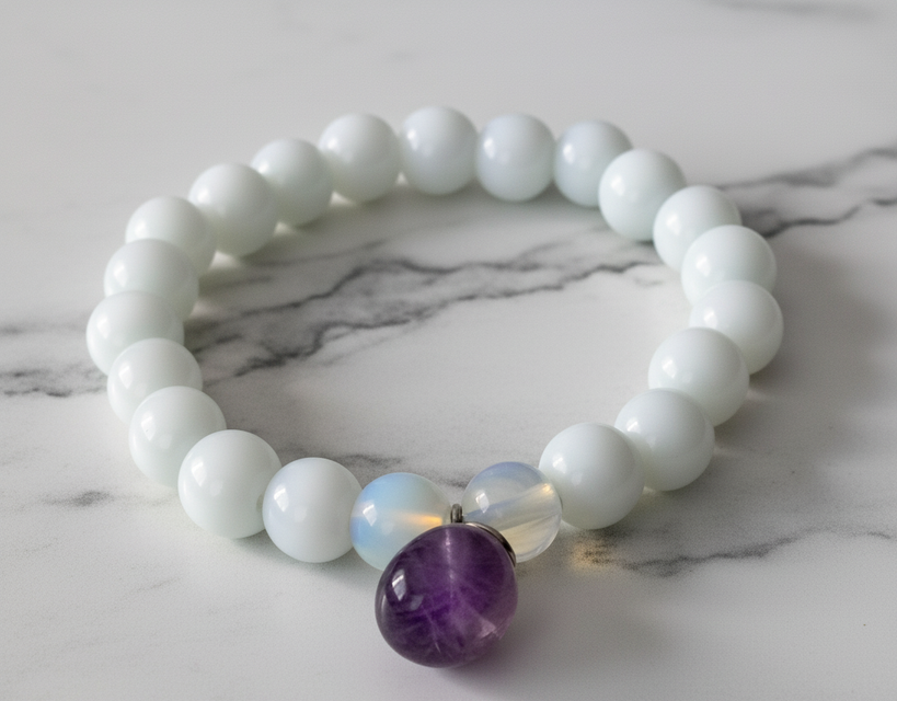 Pulsera elástica con un dije Agata y Piedras de la Luna de 8mm, De 17,5 cm de largo Ver más detalles