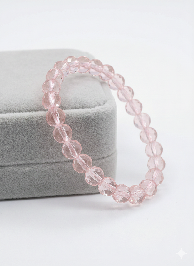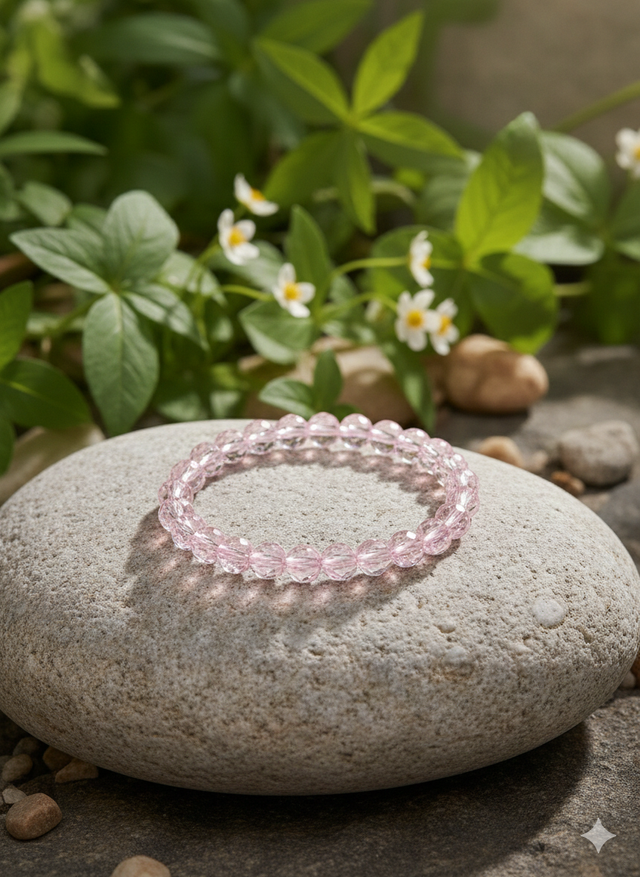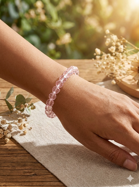 Pulsera elastica, cristal de roca rosa